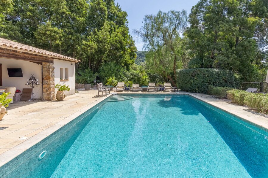 Gelegen in een zeldzame en beschermde omgeving omvat dit domein drie aparte entiteiten, volledig gerenoveerd met verfijnde smaak en hoogwaardige materialen: een hoofdvilla van 240 m², een aparte gastenwoning van 100 m² en een elegante poolhouse van 70 m², grenzend aan een zwembad van 12 x 6 meter.