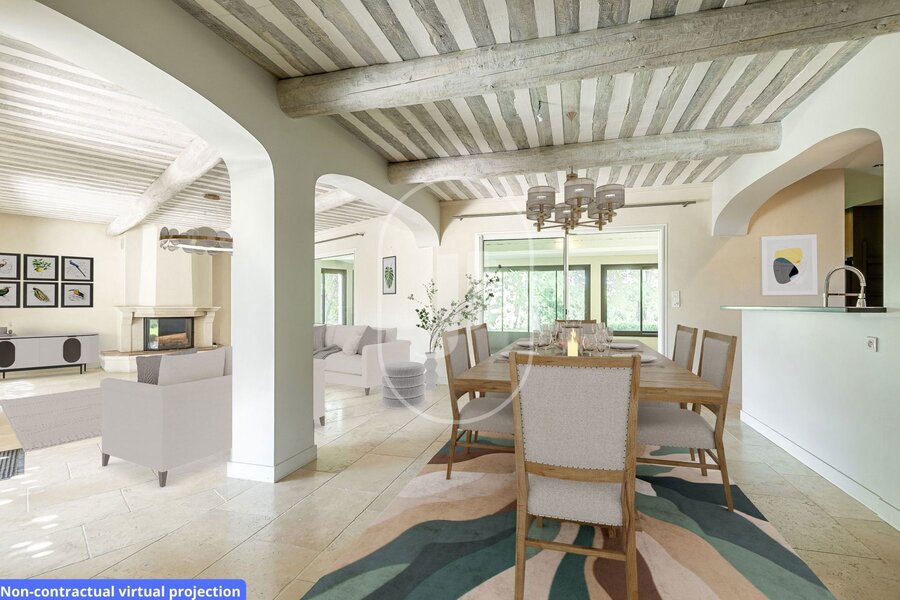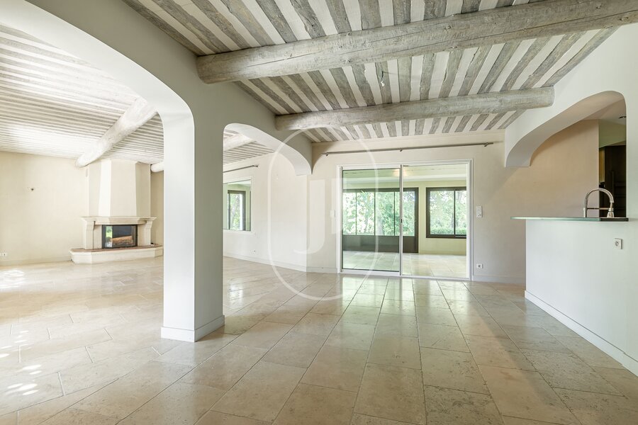Gelegen in een groene omgeving aan de Sorgue, biedt dit zeldzame pand ongeveer 181 m² op een bebost perceel van circa 3.900 m², met een zwembad en een poolhouse.