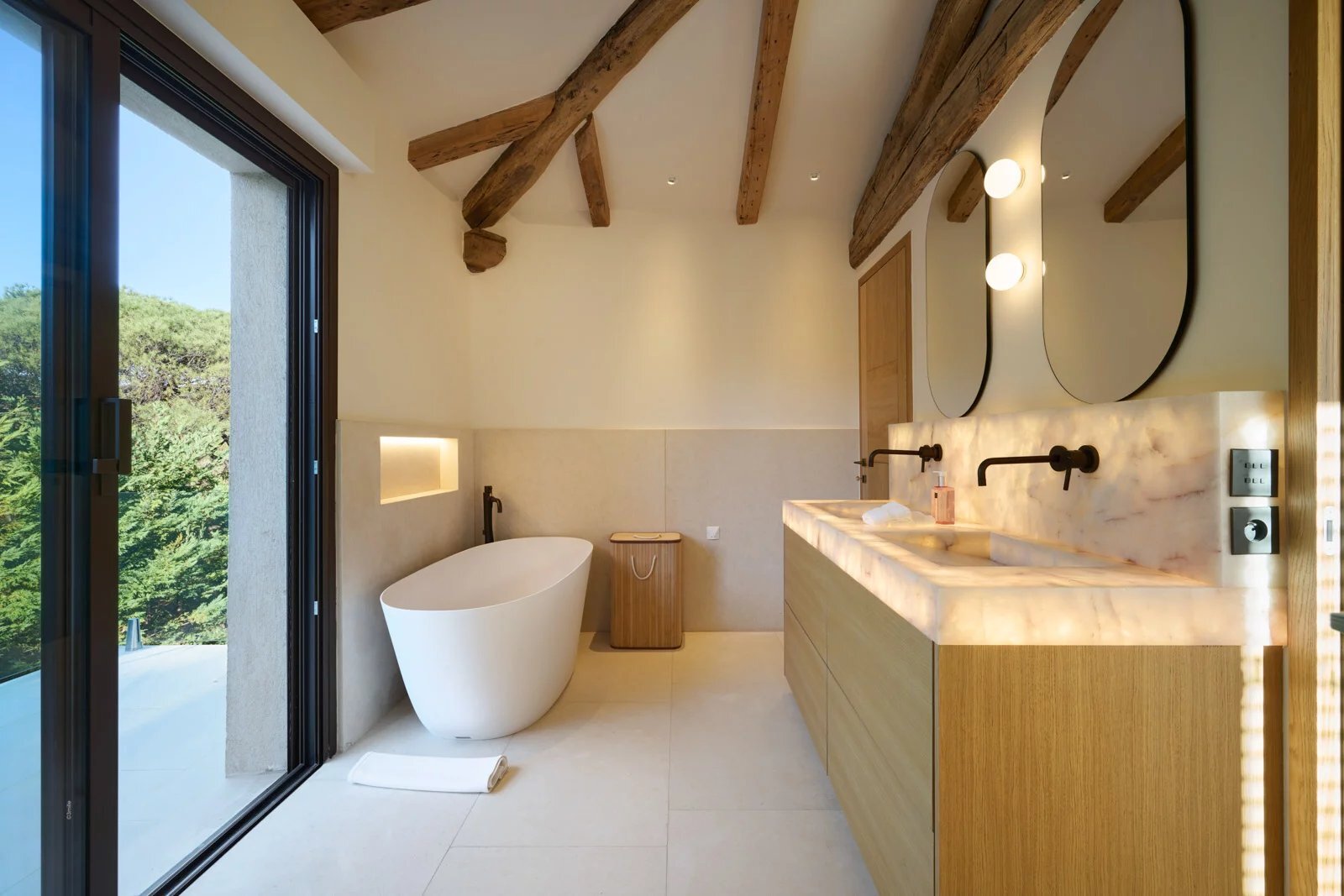 De villa is uitgerust met moderne installaties: airconditioning, domotica, videobewaking en een SONOS-audiosysteem binnen en buiten.