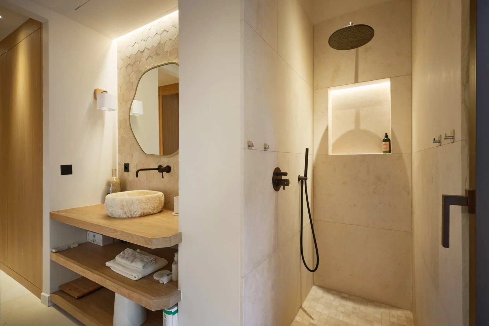 De hoofdvilla valt op door haar lichte en doorlopende ruimtes, versterkt door kathedraalplafonds en grote raampartijen. Ze beschikt over een ruime ontvangstruimte, een hoogwaardige volledig uitgeruste keuken en drie slaapkamers met en-suite badkamers.
