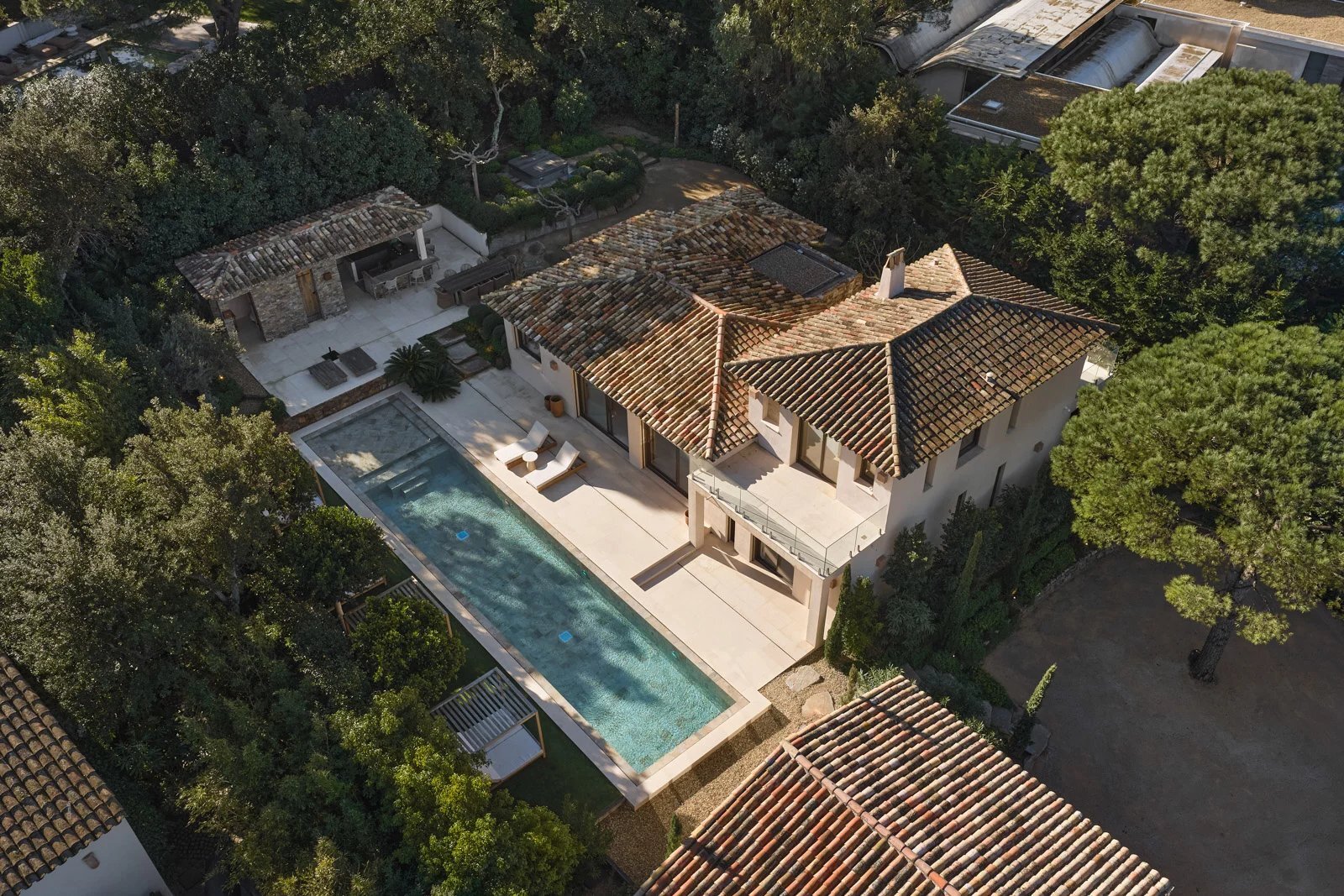 Gelegen in Ramatuelle, in het hart van een exclusief privé-domein, geniet deze nieuwbouwvilla van hoogstaande kwaliteit van een uitzonderlijke ligging, op slechts enkele stappen van de stranden van Pampelonne en het legendarische Club 55.