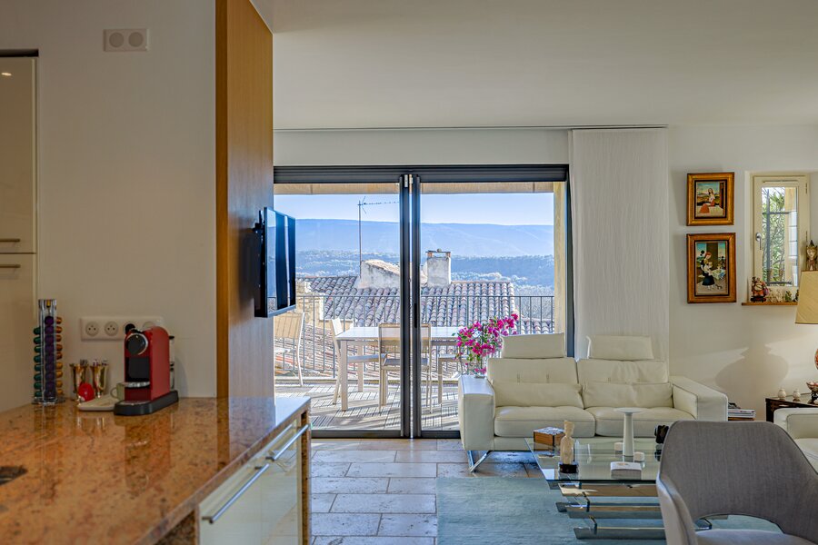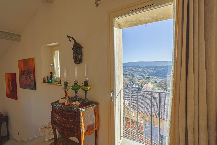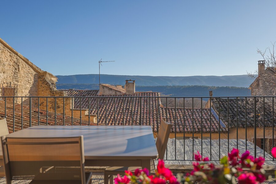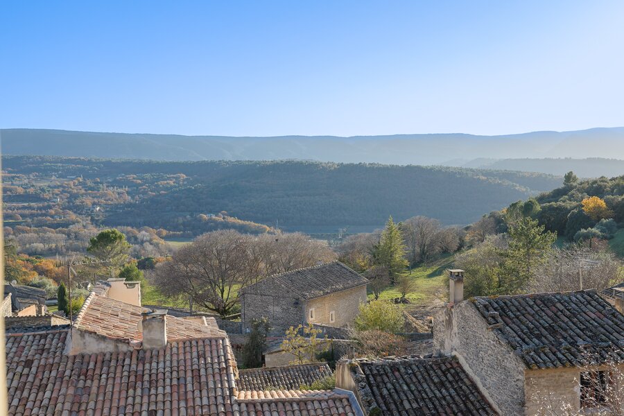 Deze stenen woning, met een bewoonbare oppervlakte van ongeveer 165 m², combineert op perfecte wijze de charme van weleer met modern comfort. Ze biedt royale volumes en een vrij uitzicht over de Luberonvallei, en ligt op slechts enkele stappen van de cafés, winkels en restaurants in het dorpscentrum.