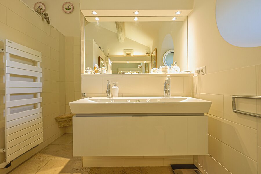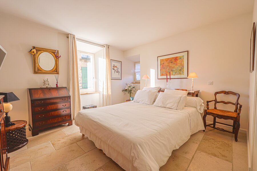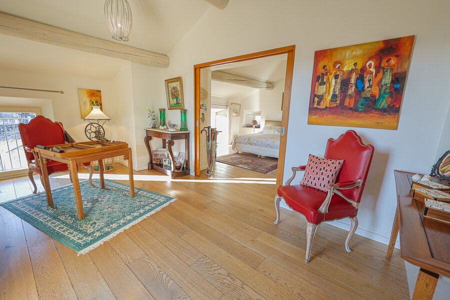De tweede verdieping biedt een prachtige ouderlijke suite met natuurlijke eikenhouten vloer, bestaande uit een privé zitkamer, een grote slaapkamer met dubbele dressing en een doucheruimte met toilet. Een Juliette-balkon biedt een subliem uitzicht op de Luberon.