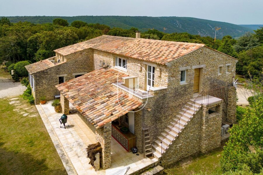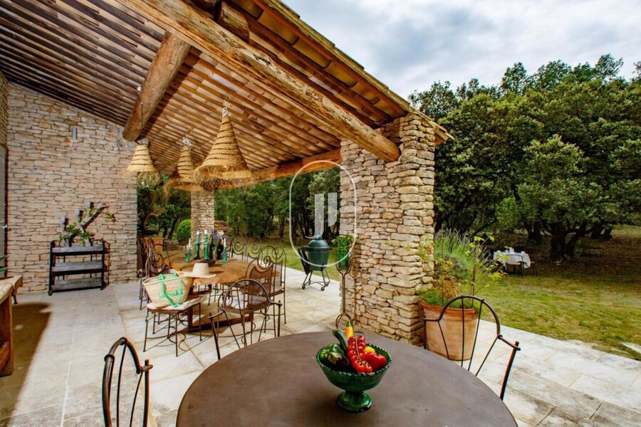 Prachtig huis in ruwe natuursteen te koop met een oppervlakte van ongeveer 340 m², gelegen op een eigen grondstuk van meer dan 1,3 ha, op enkele minuten van het pittoreske heuveldorp Bonnieux.