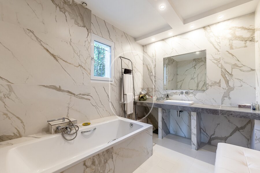 Het huis is voorzien van moderne gemakken zoals stadswater, aansluiting op het riool, vloerverwarming, omkeerbare airconditioning, gasconvectoren, een automatisch irrigatiesysteem, centrale stofzuiging en elektrische rolluiken.