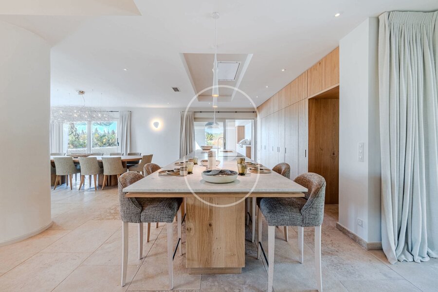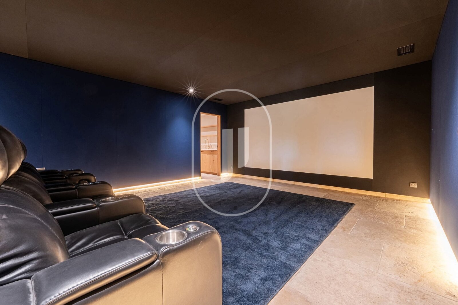 Op de begane grond bevindt zich een grote entree met garderobe, drie prachtige slaapkamers met eigen badkamer, twee extra slaapkamers die een badkamer delen, een wasruimte, een wijnkelder, een comfortabele homecinema en een kitchenette.