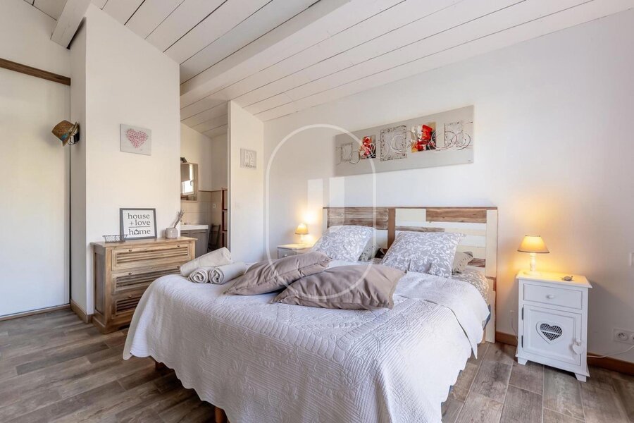 Naast het huis biedt de derde gîte met eigen terras extra ruimte, ideaal voor gasten of voor gebruik als seizoensverhuur: een studio, een badkamer en een toilet. De accommodatie beschikt over een zwembad en creëert een idyllische omgeving voor momenten van ontspanning in de buitenlucht. Ten slotte biedt een grote parkeerplaats een veilige beschutting voor uw voertuigen.