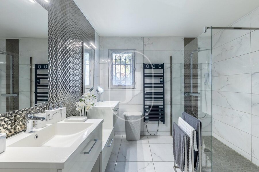 Op de eerste verdieping beschikt de hoofdslaapkamer over een grote, moderne badkamer, terwijl een lichte kamer kan dienen als kantoor of inloopkast.