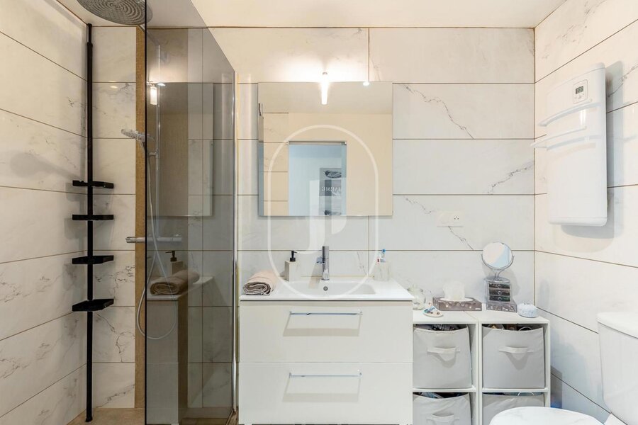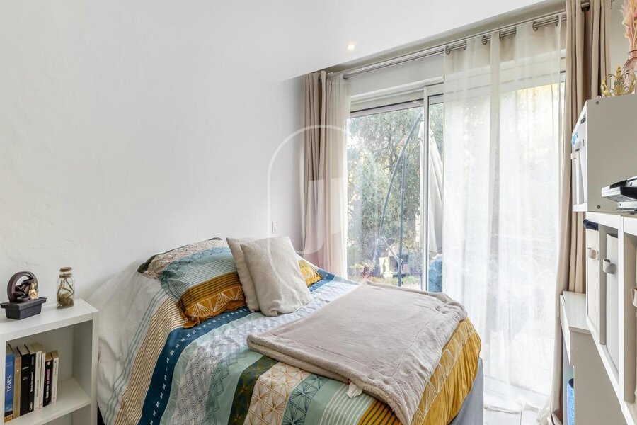 Op tuinniveau bevindt zich een bijgebouw met een woonkamer, een zonnige slaapkamer met grote schuiframen en een volledig uitgeruste keuken. Een gerenoveerde badkamer maakt dit niveau compleet en biedt aangename privacy.