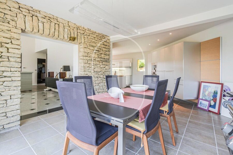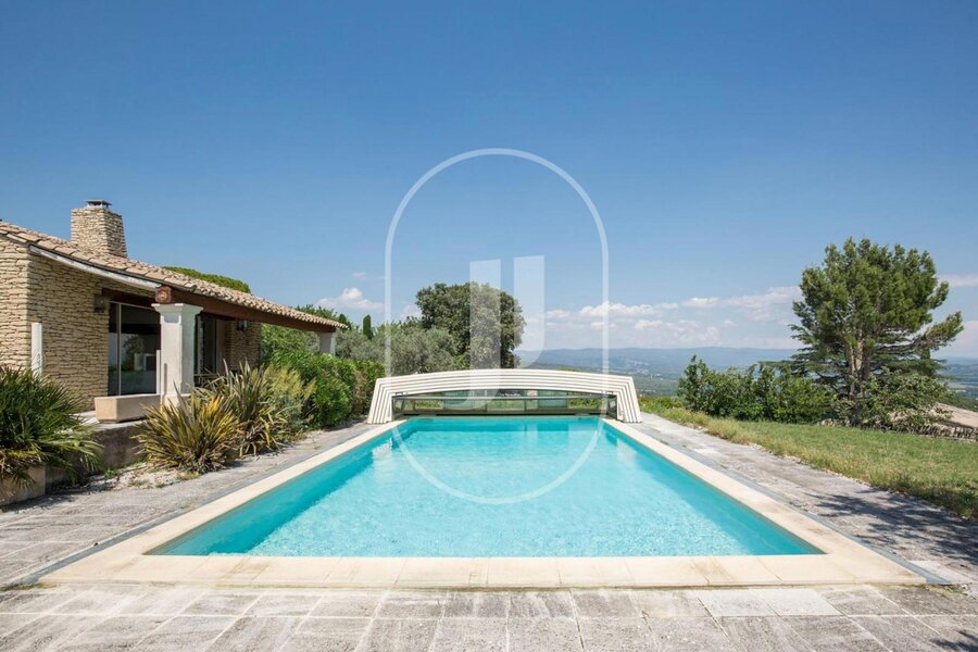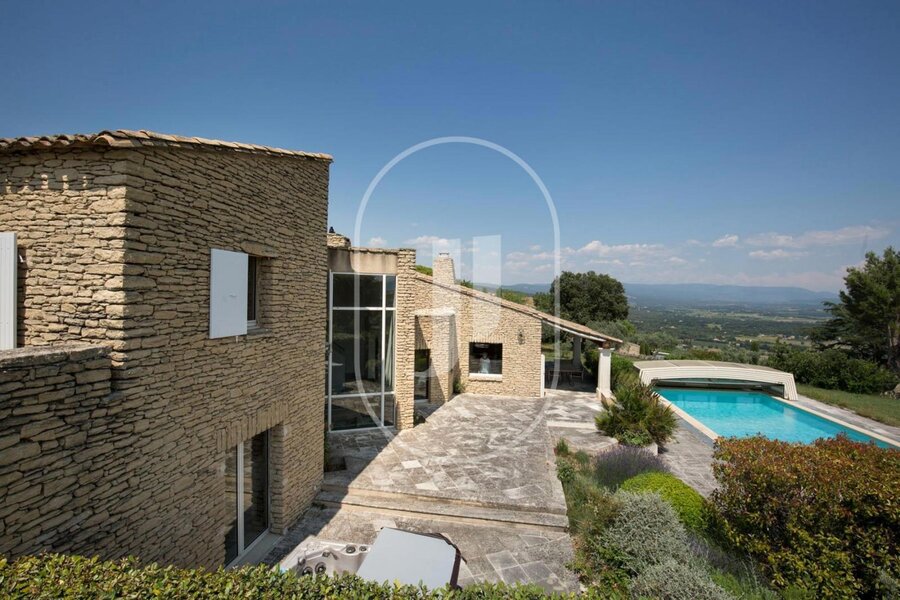 Villa in ruwe natuursteen met zwembad te koop, gelegen in een residentieel kader van Gordes.