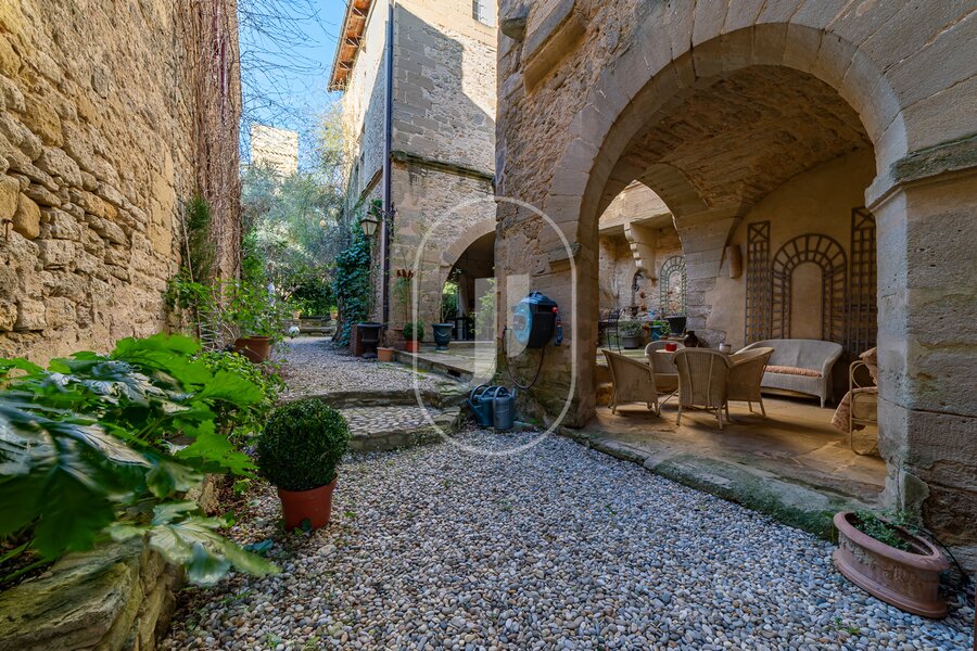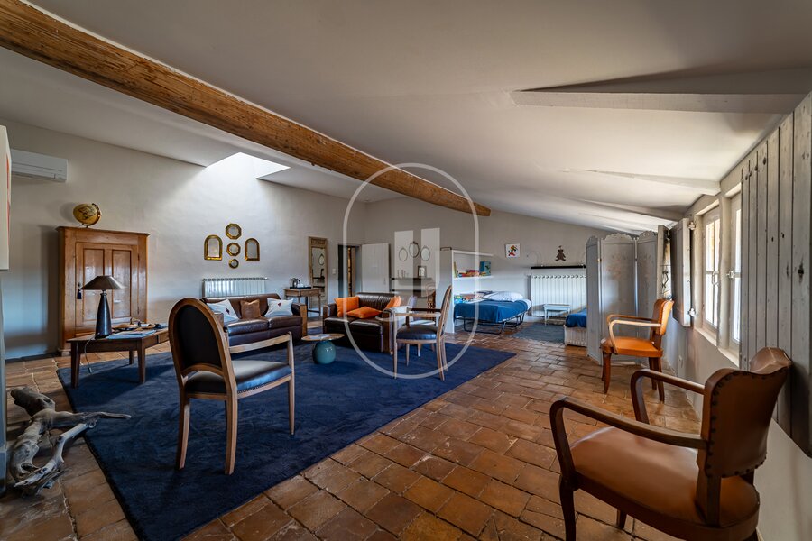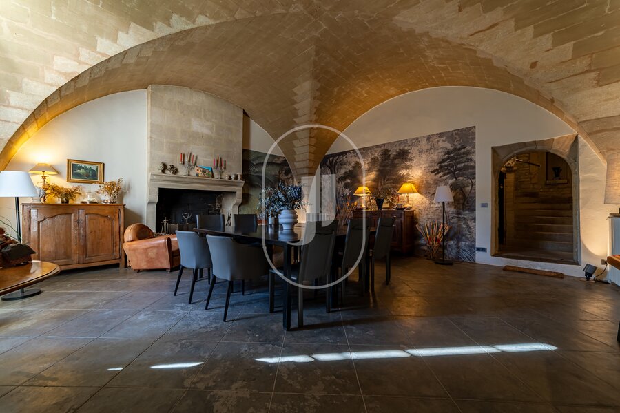 Een uitzonderlijk historisch pand van ongeveer 550 m², waarvan 460 m² bewoonbare oppervlakte, gelegen in het hart van een typisch en gewild dorp nabij Uzès. Deze woning is ideaal voor liefhebbers van karaktervolle panden met een rijk historisch verleden. Op de begane grond bevindt zich een wachtruimte, een moderne keuken en verschillende functionele ruimtes. Op de eerste verdieping bevindt zich een statige, lichte salon, verrijkt met een indrukwekkende open haard en verfijnde Franse plafonds. Verder biedt deze etage een royaal bureau op het zuiden, twee slaapkamers met elk een eigen badkamer, een ruime dressing en een suite met een aparte zitruimte en een duplex slaapkamer. De tweede verdieping biedt drie ruime slaapkamers, elk met een eigen badkamer en een privé salon. Aan de binnenplaats zorgen prachtige ruimtes onder de eeuwenoude bogen voor een idyllische setting om te genieten van het zachte klimaat. Daarnaast biedt een verfrissend whirlpoolbad een extra vleugje luxe. De woning verkeert in uitstekende staat en wordt te koop aangeboden door onze vastgoedkantoor in Uzès.