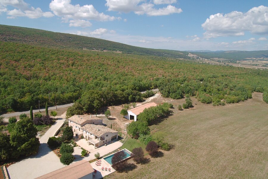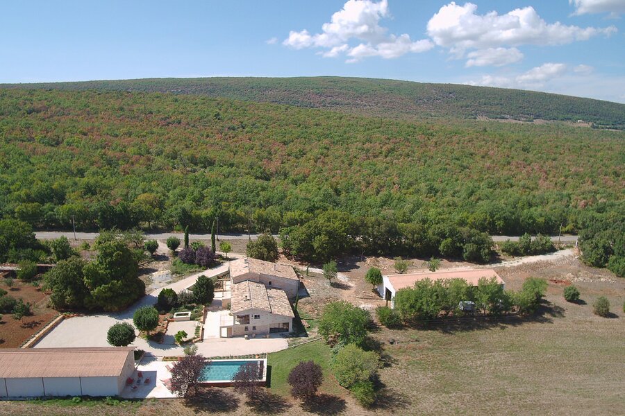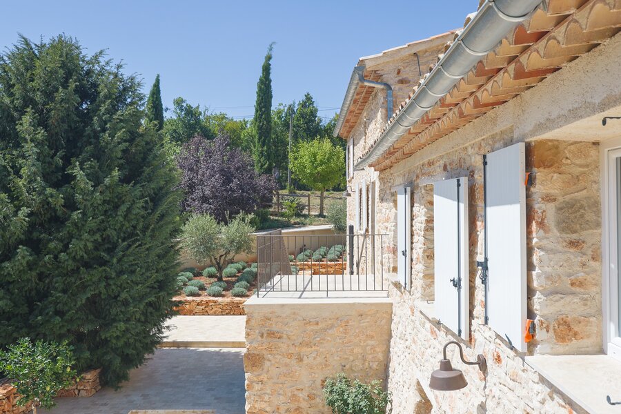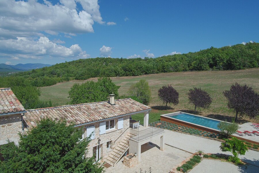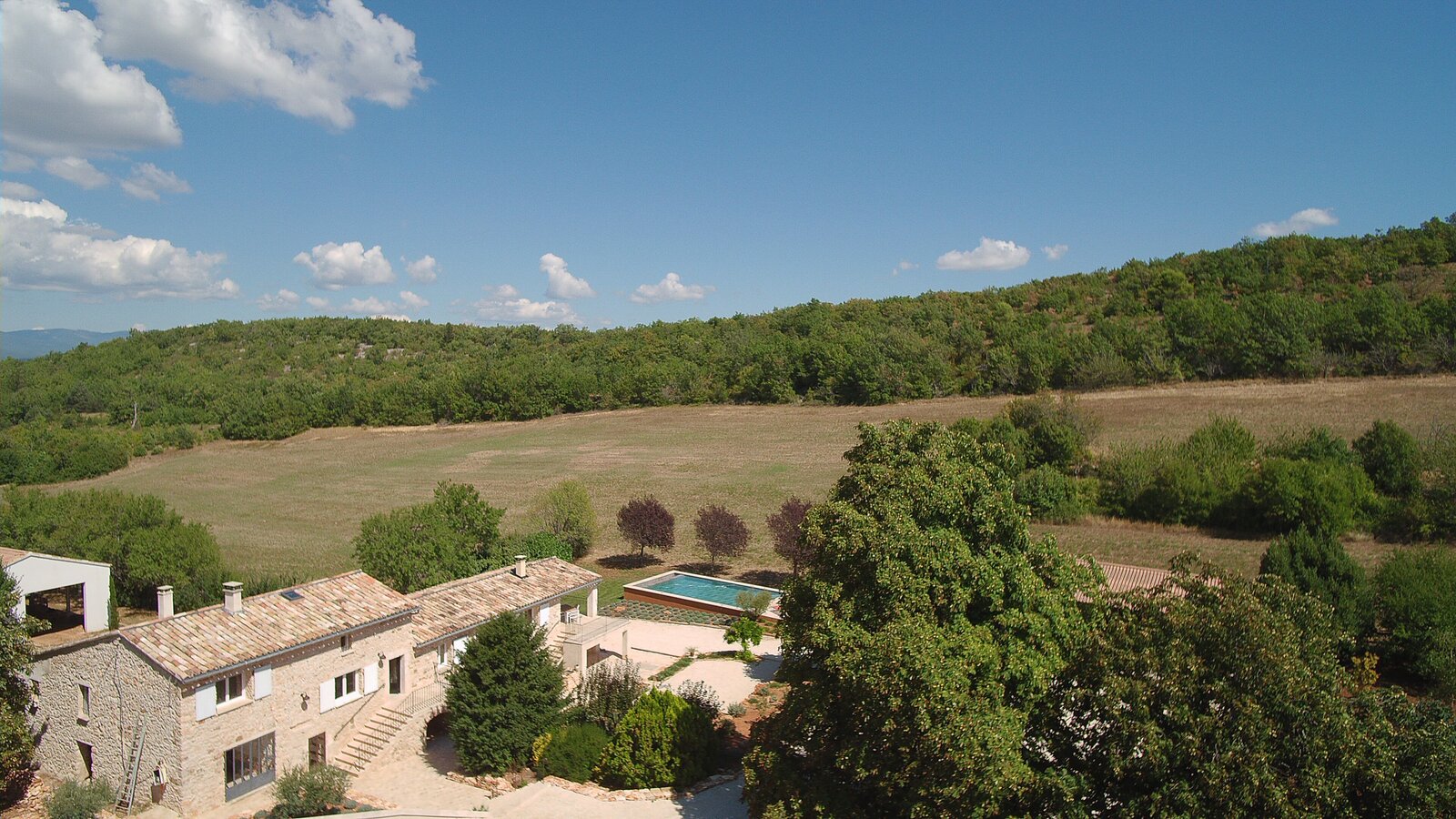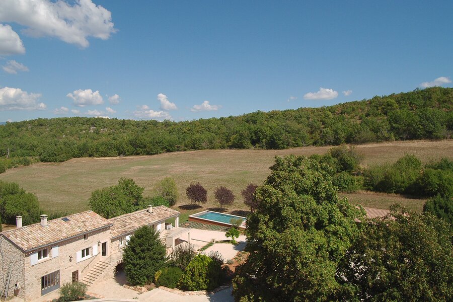 Aan de rand van Simiane-la-Rotonde staat een oude stenen boerderij te midden van 14 hectare natuur park van de Luberon. Net als andere boerderijen in de omgeving voedde deze ooit de monniken van de abdij van Valsaintes. Door de eeuwen heen breidde de boerderij zich uit en onderging verschillende transformaties voordat ze onder de hoede van de huidige eigenaar werd herbouwd, die de boerderij in ere heeft hersteld.