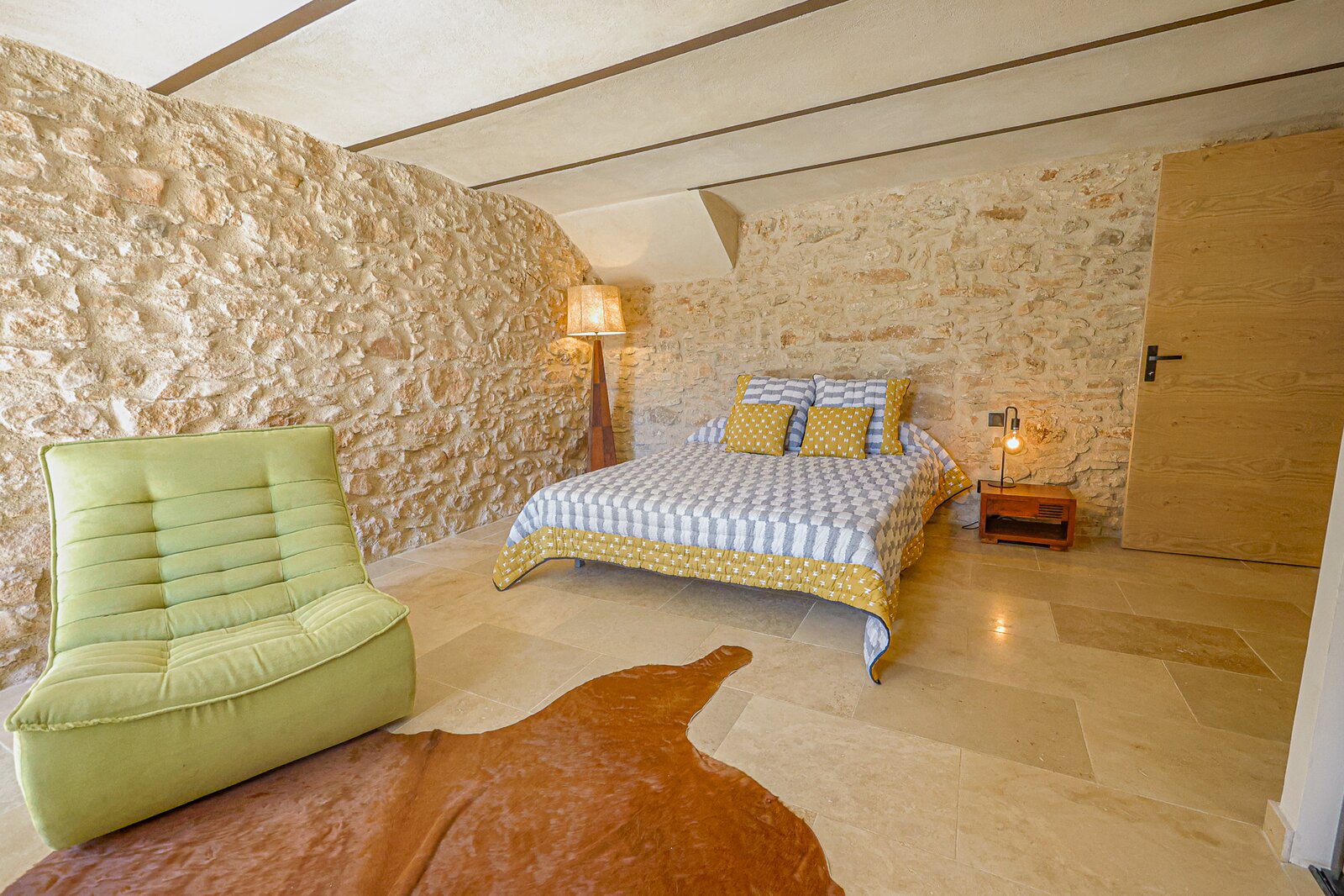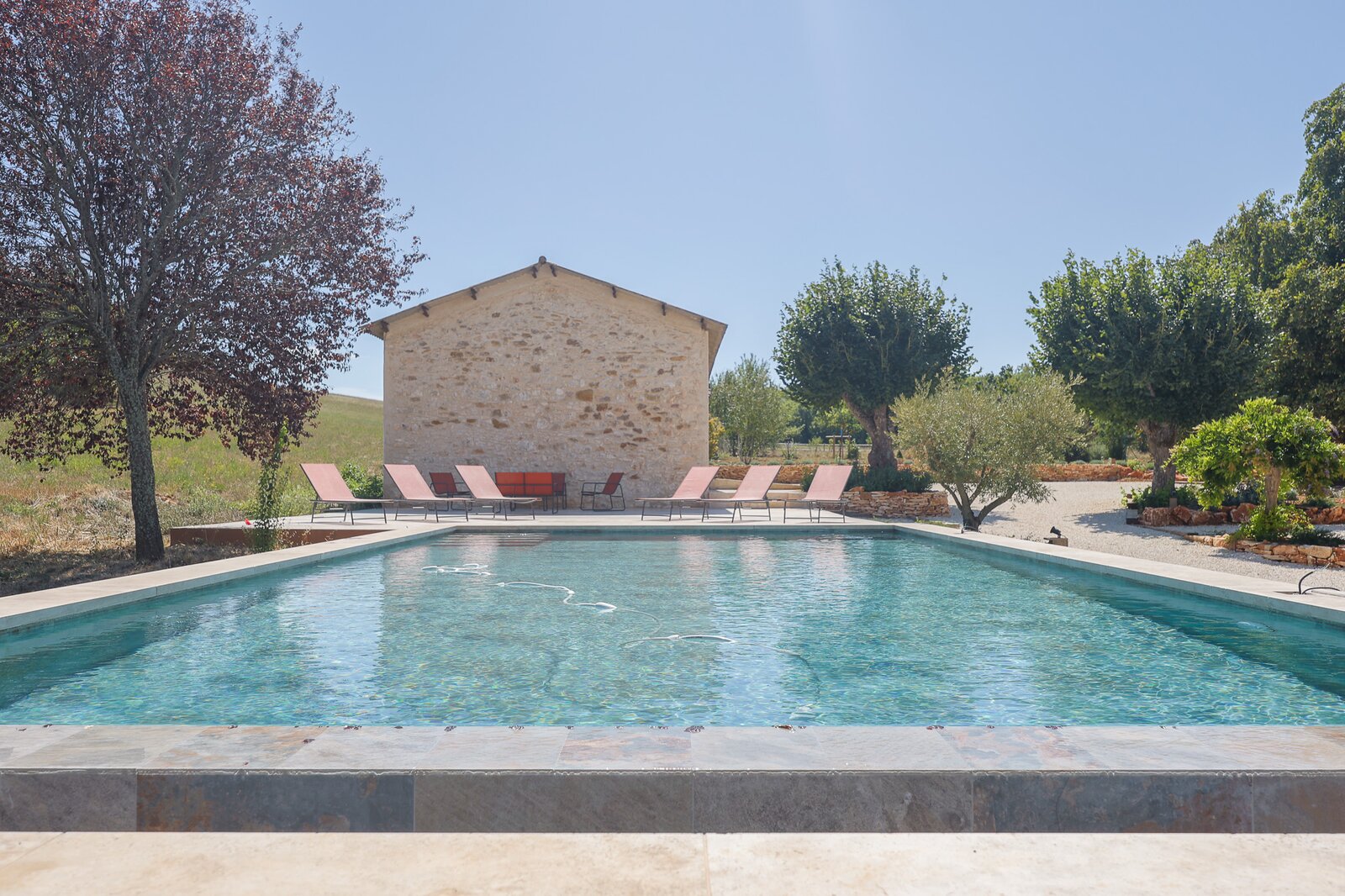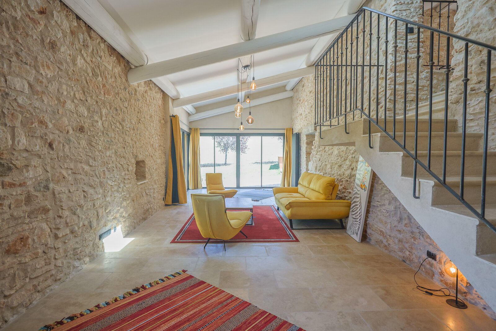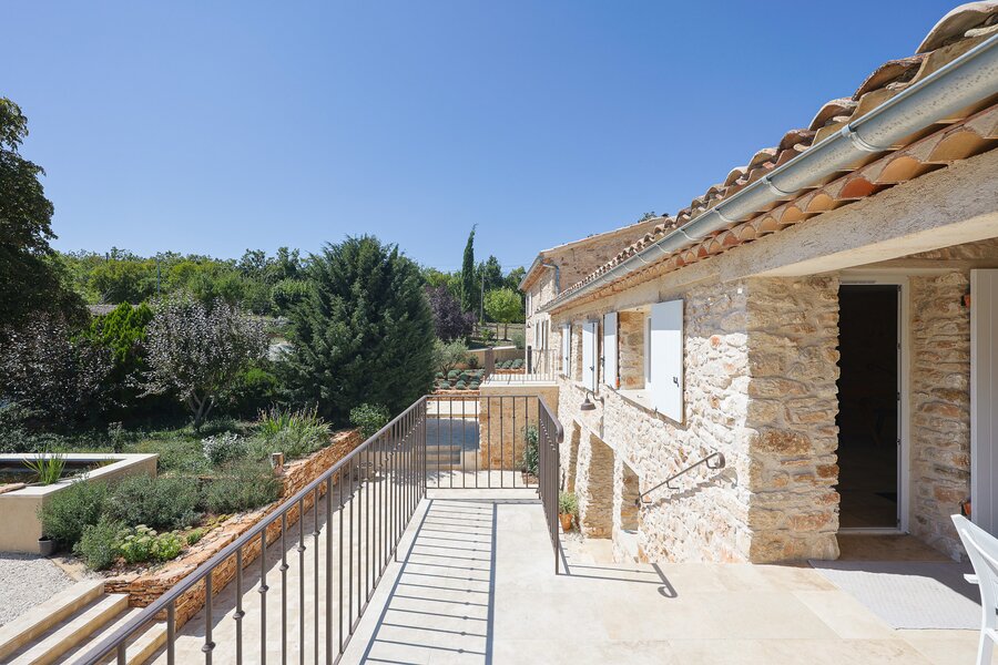 Aan de rand van Simiane-la-Rotonde staat een oude stenen boerderij te midden van 14 hectare natuur park van de Luberon. Net als andere boerderijen in de omgeving voedde deze ooit de monniken van de abdij van Valsaintes. Door de eeuwen heen breidde de boerderij zich uit en onderging verschillende transformaties voordat ze onder de hoede van de huidige eigenaar werd herbouwd, die de boerderij in ere heeft hersteld.