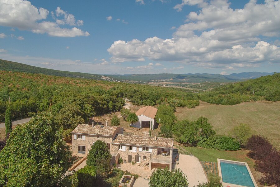 Gerenoveerde stenen boerderij en bijgebouwen, in het hart van 14 hectare in Simiane-la-Rotonde