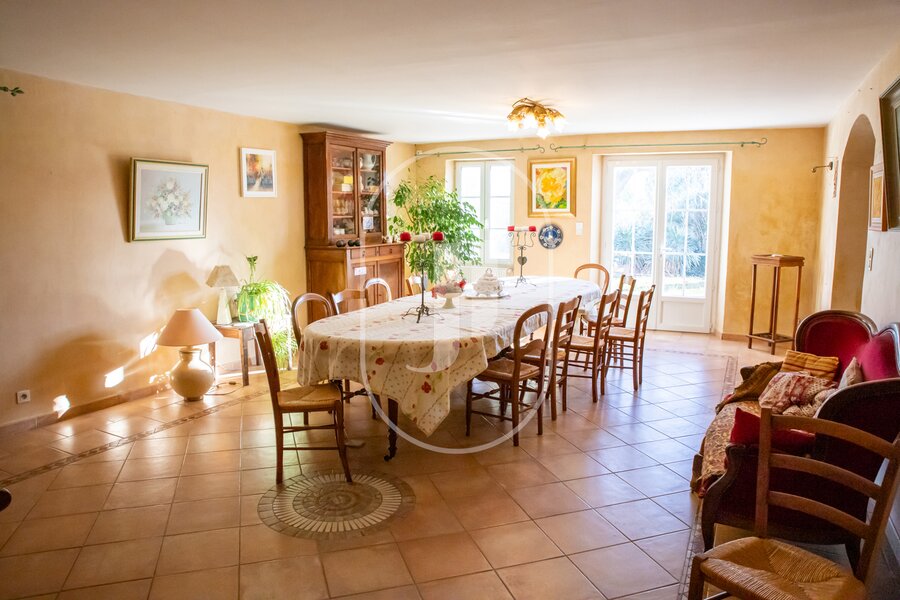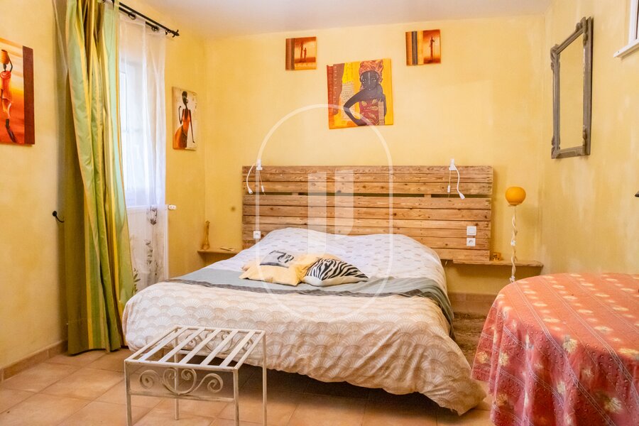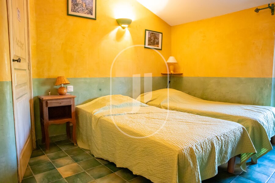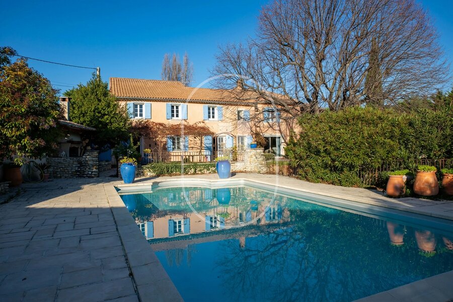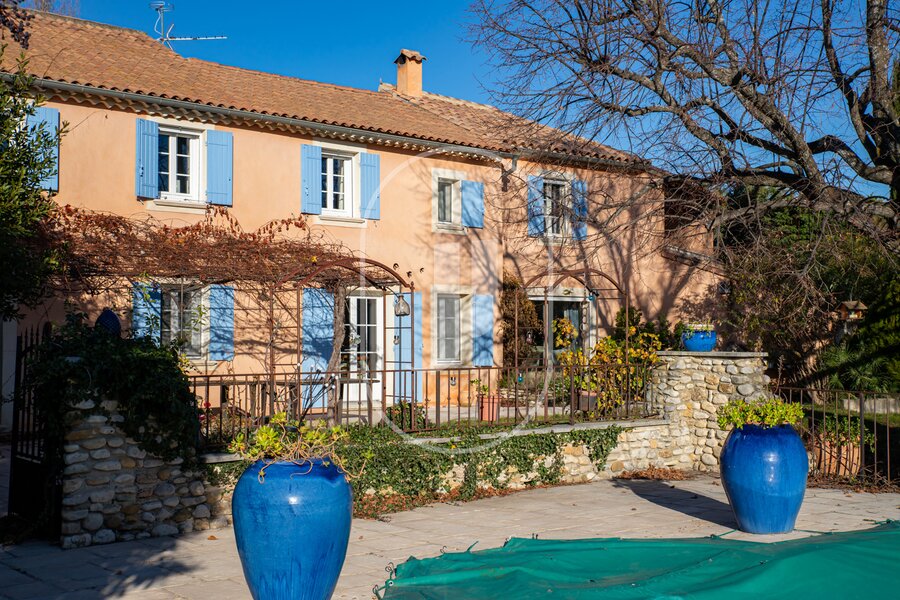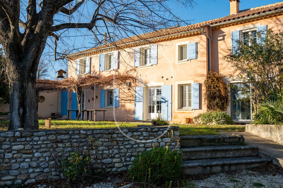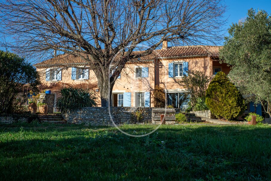 Gelegen in de Enclave des Papes, geniet deze grote 18e-eeuwse Provençaalse stenen boerderij, gerestaureerd en uitgebreid tussen 1999 en 2001, van een rustige en lichte landelijke omgeving, op korte loopafstand van een dorp met winkels. Het pand, gebouwd op een perceel van 10.760 m², biedt ongeveer 360 m² woonoppervlak en een zwembad van 5 m x 10 m met grote betegelde zonneterrassen, perfect om volop van de Provençaalse zon te genieten.