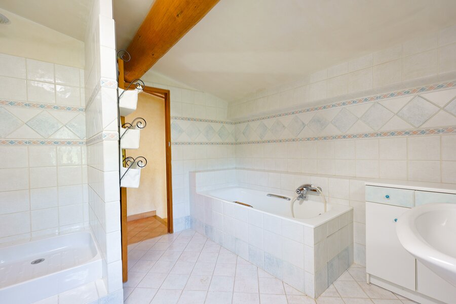 De bastide heeft 4 ruime slaapkamers en 3 badkamers en het bijhuis heeft 2 kamers en 2 badkamers met salon en keuken. Het eigendom heeft een zeer groot potentieel en is ideaal voor de natuurliefhebber.. Er is eveneens een ruime garage en een groot zwembad 13 x 6.