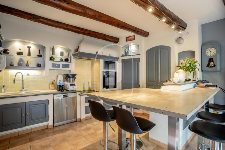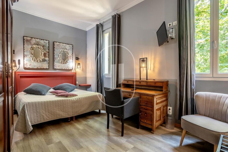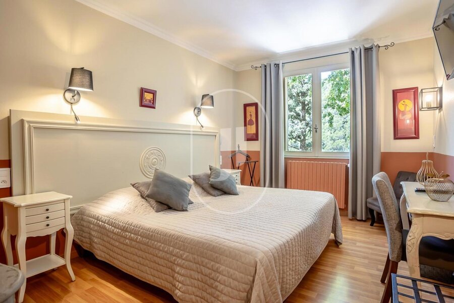 Daarnaast biedt het tien ruime en comfortabele kamers, samen met een groot schaduwrijk terras, dat een ideale setting biedt om te ontspannen en te genieten van de uitzonderlijke omgeving. Een familiehuis van ongeveer 140 m² maakt deze opmerkelijke residentie compleet, met een lichte woonkamer, een ingerichte keuken, een terras en een privétuin, evenals drie slaapkamers en een badkamer. Een bijgebouw is nog voorzien van extra kamers, waaronder een tweepersoonskamer, wat zorgt voor een uitgebreide capaciteit. Buiten ontdekt u een zwembad voor verfrissende ontspanningsmomenten.