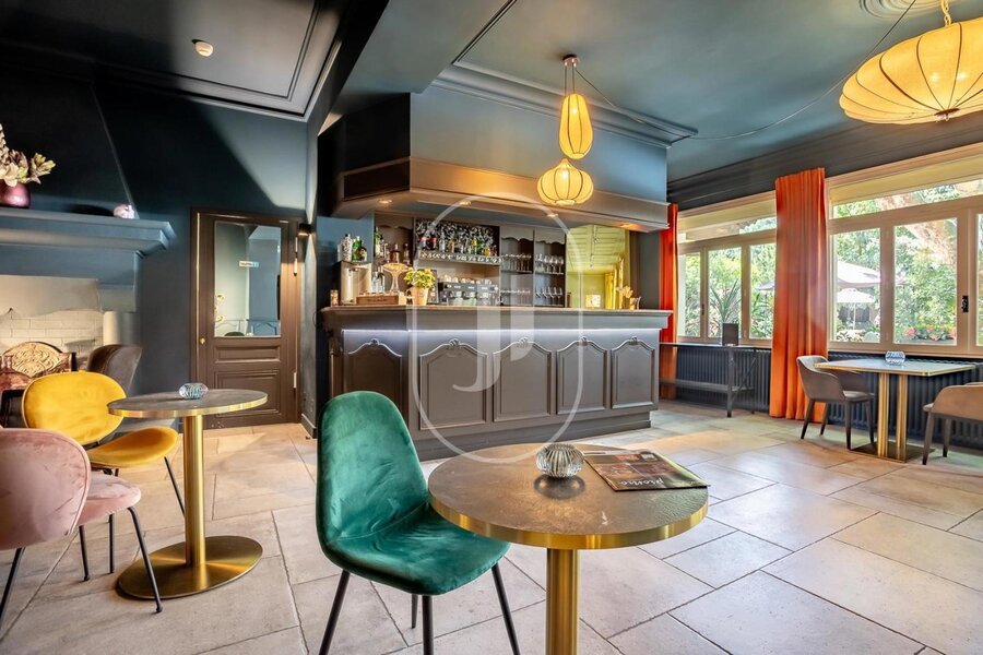Het hoofdgebouw, met een oppervlakte van ongeveer 800 m², heeft alle benodigde faciliteiten voor een succesvolle exploitatie. Het bestaat uit opslagruimtes en kantoren, een volledig uitgeruste professionele keuken, een grote wijnkelder, een restaurantzaal, een lounge en een bar, evenals een gastvrije receptie.