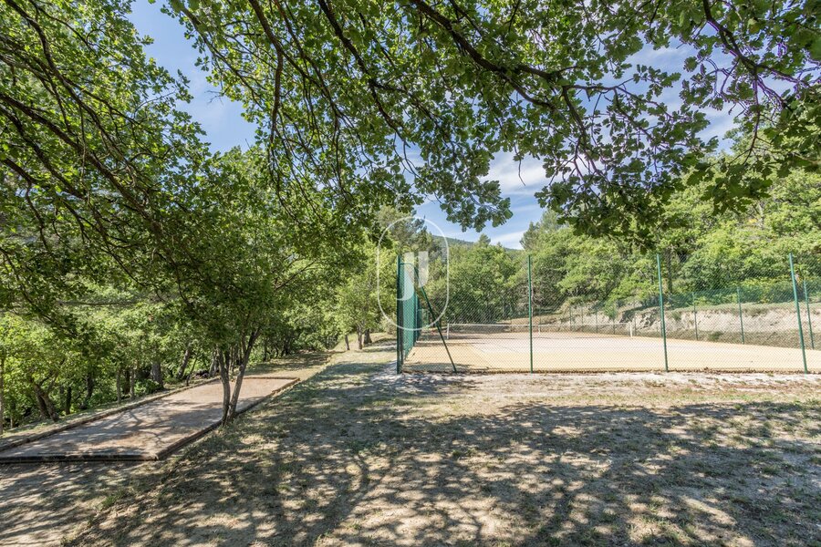 De oppervlakte van het grondstuk bedraagt ongeveer 14.070 m² : zonnige of beschaduwde terrassen, een verwarmd zwembad van 12x6 m, een tennisplein, een petanquebaan en talrijke rustige hoekjes om van de serene omgeving te genieten. Het prachtige uitzicht op Bonnieux en Lacoste vormt een constante uitnodiging tot ontspanning, in een sfeer die doet denken aan een Provençaalse postkaart.