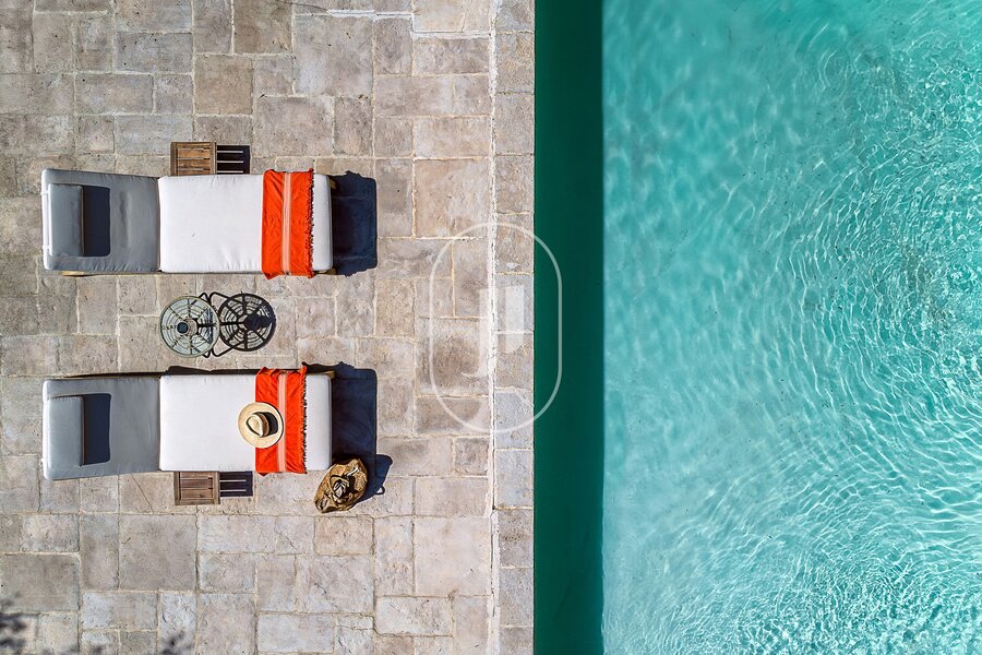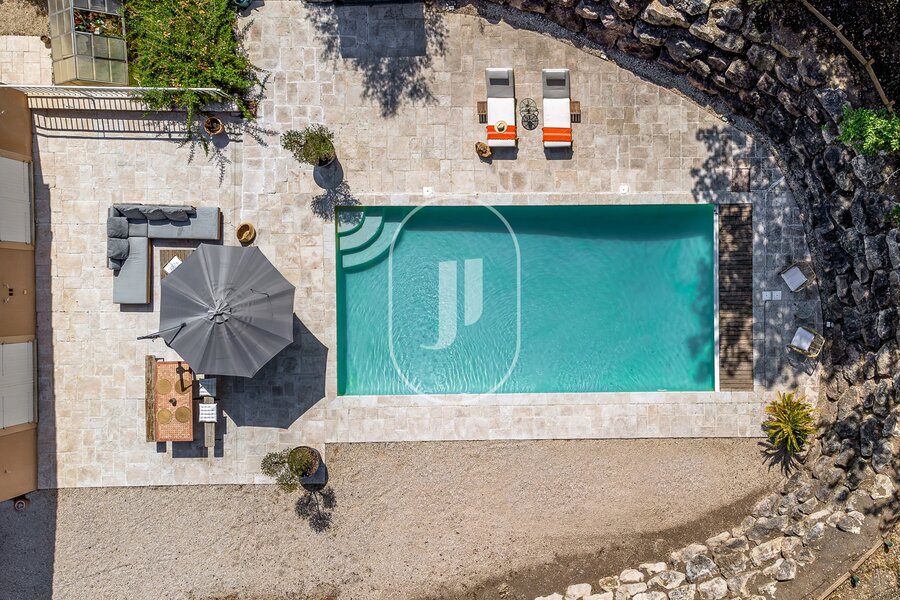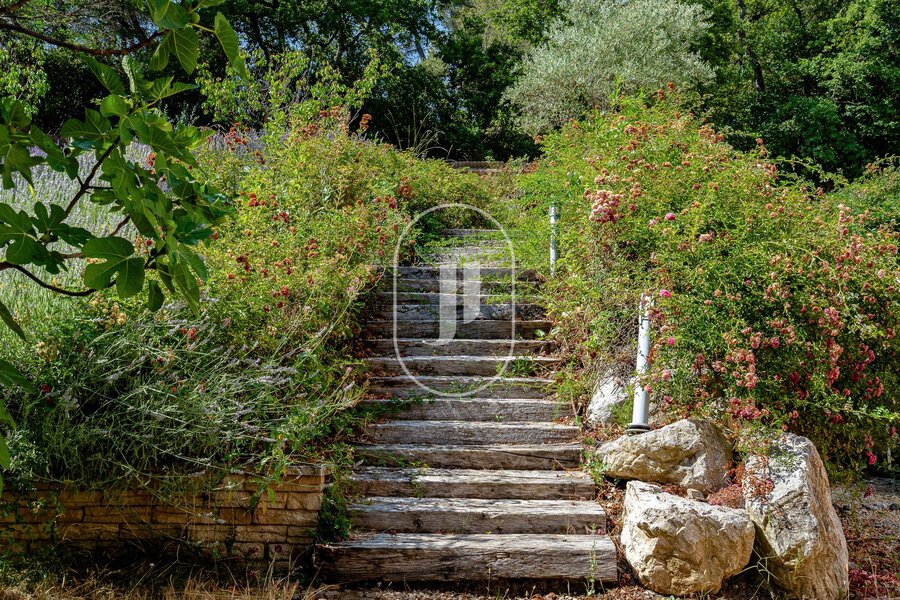 Het terrein van ongeveer 4000 m², met zijn aangelegde en bebloemde terrassen, biedt heerlijke plekjes van rust en koelte. Met zijn royale volumes en hoogwaardige materialen is dit de perfecte woning om familie en vrienden te ontvangen aan de poorten van Aix-en-Provence.