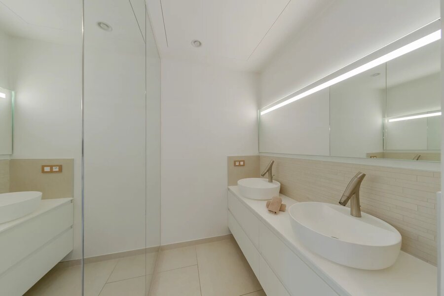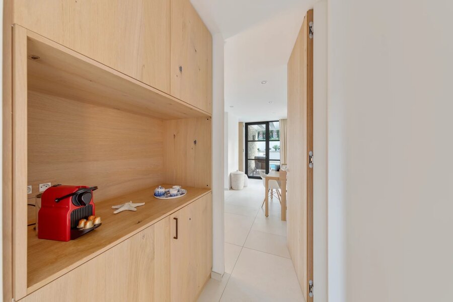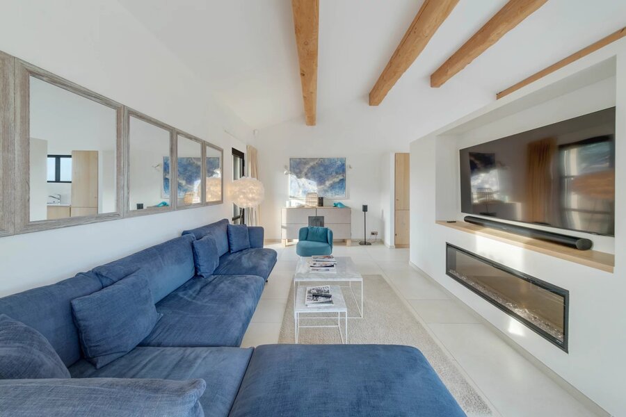 De villa beslaat twee verdiepingen en biedt plaats aan 10 personen in vijf slaapkamers met eigen badkamers, allemaal op de begane grond met directe toegang tot de tuin en het zwembad. Boven bevindt zich een woon- en eetkamer voor 10 personen, samen met een open, volledig uitgeruste keuken en twee terrassen met eet- en zithoeken, perfect gepositioneerd om van het uitzicht op zee te genieten. De villa beschikt ook over een droge sauna en een afgesloten garage voor twee auto's.