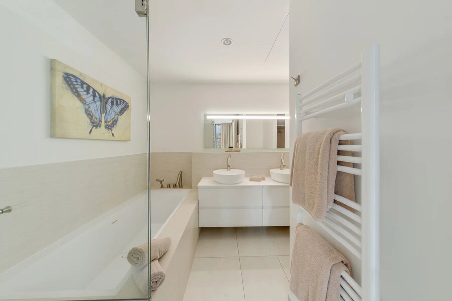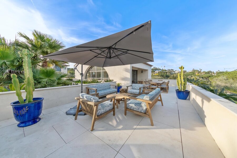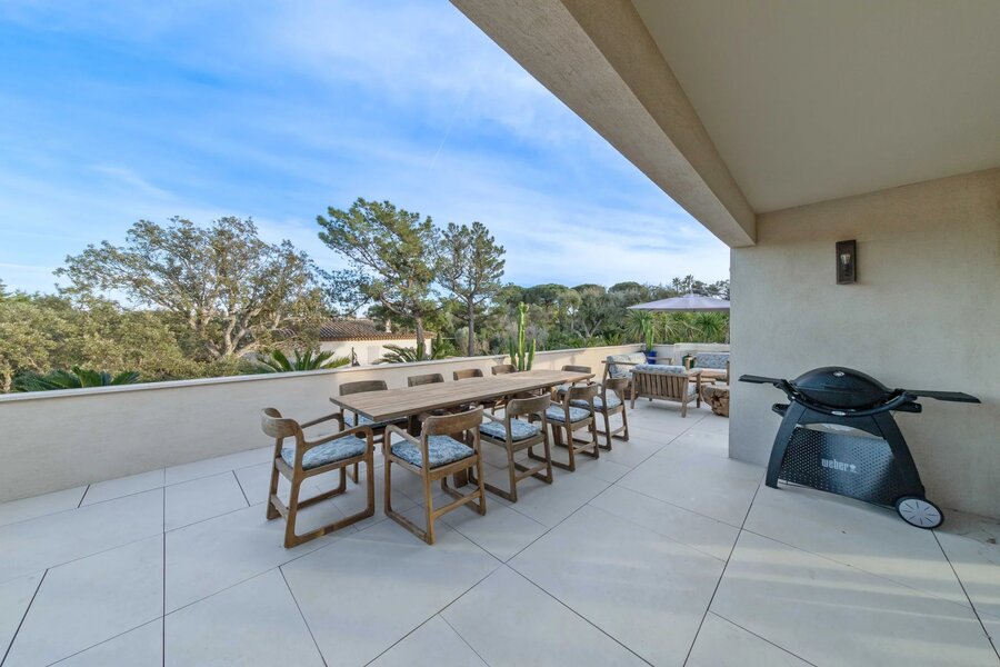 De woning is gelegen in een beveiligd complex op korte loopafstand van de Boulevard Patch en de stranden van Pampelonne in Ramatuelle.