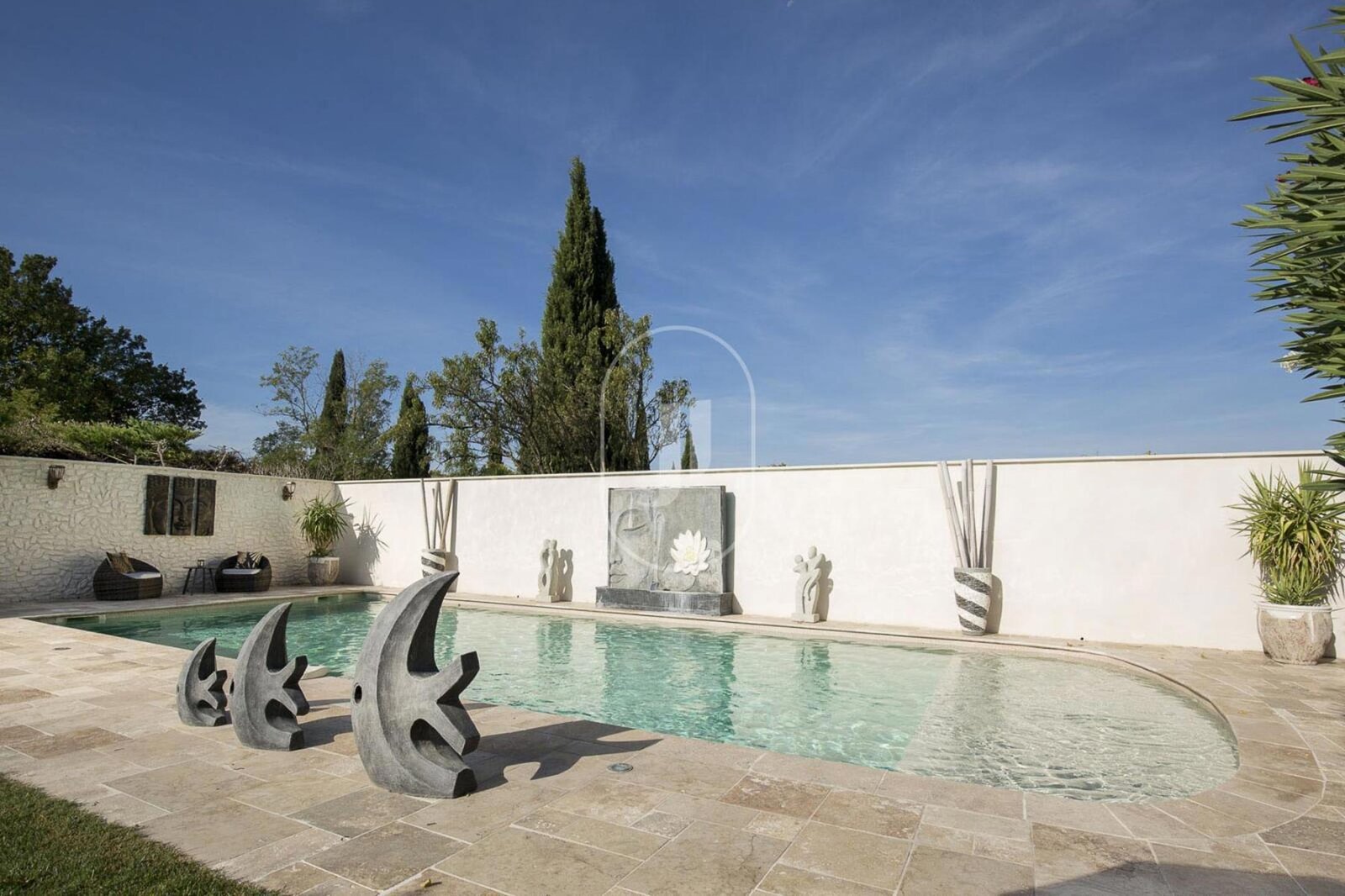 Wat betreft de gemeenschappelijke delen: een zwembad van ongeveer 12 x 5 m met alarm, een jeu-de-boulesbaan, 3 schaduwrijke parkeerplaatsen, vijver.