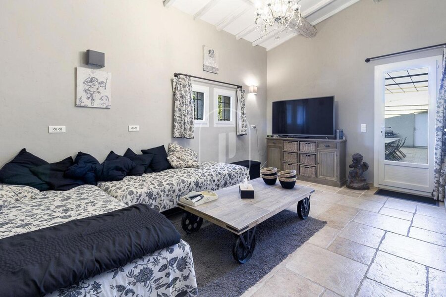 De villa is rustig gelegen op het platteland, in een residentieel kader, op slechts 10 minuen rijden van het dorp met zijn locale winkels, traditionele restaurants, wekelijkse markt en zomerse aktiviteiten.