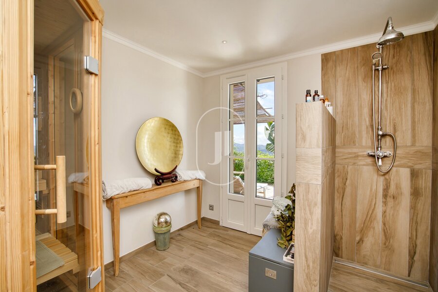 Mooie gerenoveerde villa, gelegen in een prachtige omgeving met zicht op zee en het omliggende landschap, vlakbij het dorp La Garde-Freinet. De woonoppervlakte van ongeveer 300 m² is verdeeld over 2 niveaus. Het huis heeft een luchtige woonkamer, een volledig uitgeruste keuken, 4 slaapkamers met eigen badkamer, een studeerkamer, een TV kamer en een wellnessruimte.
