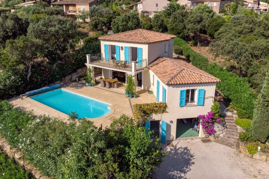 Charmante villa in neoprovençaalse stijl in Cavalaire met schitterend uitzicht op zee, rustig gelegen nabij het stadscentrum en de stranden.