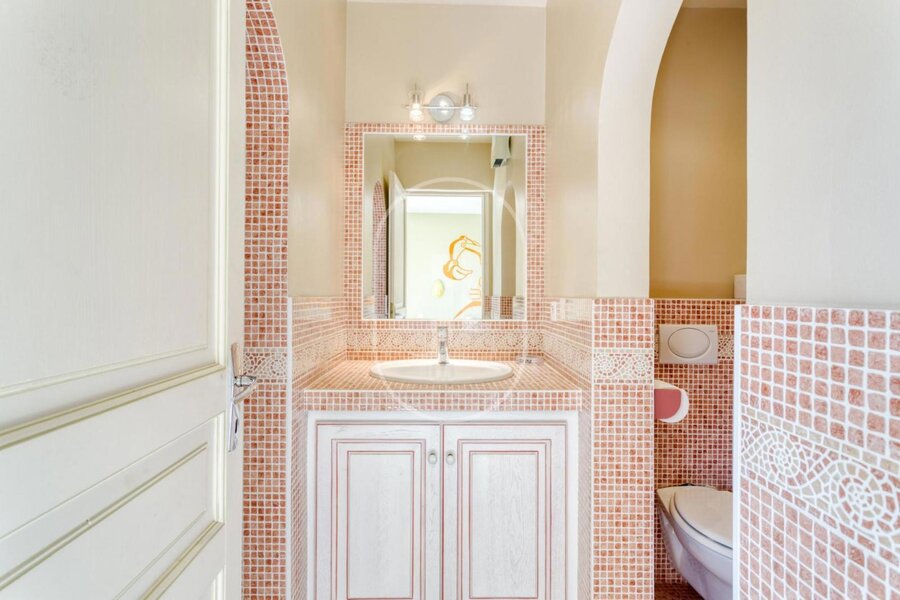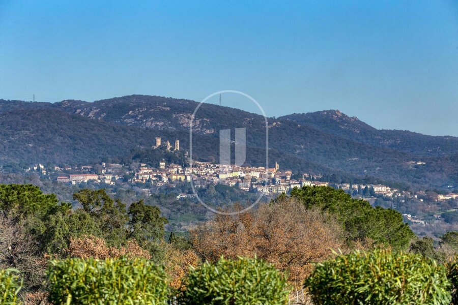 Een grote overdekte terras loopt langs de rand van het perceel, terwijl een tweede terras toegankelijk is vanaf twee van de slaapkamers boven, zodat u kunt genieten van het vrije uitzicht en de prachtige omgeving. Binnen de 8.000 m² tuin en wijngaarden vindt u een verwarmd zwembad van 10 x 4 m, evenals een overkapping die eenvoudig kan worden omgebouwd tot een poolhouse of bar – ideaal voor zomerse dagen. Een dubbele garage van ongeveer 38 m² maakt ook deel uit van deze woning te koop in Cogolin.
