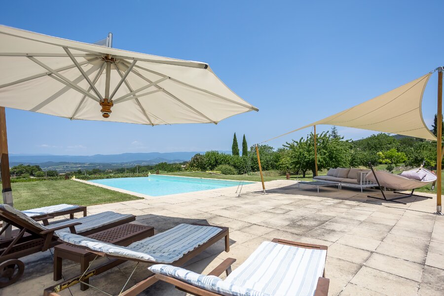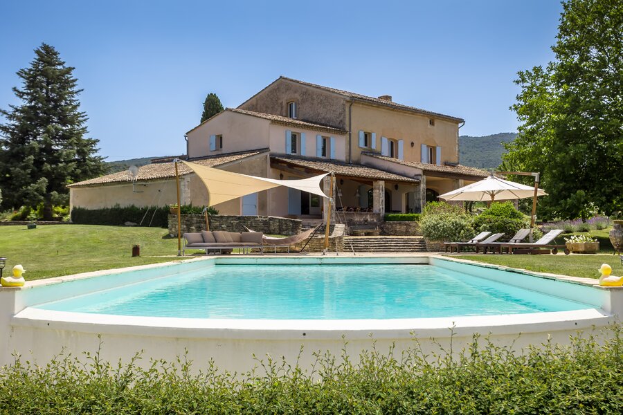 De tuin is zeer goed onderhouden en heeft een mooi zwembad van 13 op 6 m. De totale oppervlakte van de woning bedraagt 358m2 en het terrein bedraagt net geen 4 hectare. Het zicht op het dorp is adembenemend en vanuit de tuin is er een mooi zicht op de Mont Ventoux.