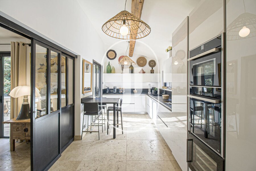 Deze woning combineert Provençaalse charme met luxe voorzieningen (RT2012-normen). Volledig uitgerust met domotica, alarmsysteem, omkeerbare verwarming en glasvezelinternet, biedt het modern comfort. De omheinde en beboste tuin beschikt over automatische irrigatie en buitenverlichting. Binnen zorgen dubbele beglazing, horren, een open haard en een waterontharder voor optimaal welzijn en energiezuinigheid. Dankzij de uitstekende ligging dichtbij het dorp heeft men een prachtig uitzicht op de Alpilles vanaf de bovenverdieping, zonder geluidsoverlast of visuele hinder. Bovendien biedt de gelijkvloerse suite extra comfort.