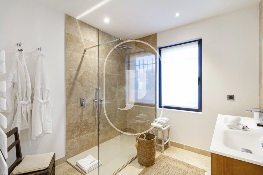 Eerste verdieping: Drie prachtige suites, elk bestaande uit een slaapkamer, badkamer met bad of douche, toilet en een dressing. Twee suites zijn verbonden via een op het zuiden gelegen balkon.