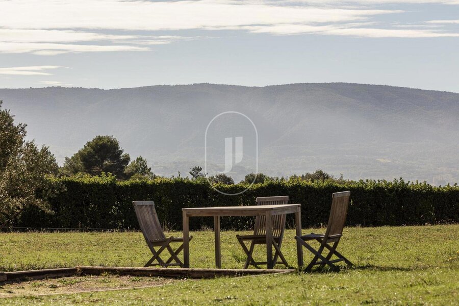 Het huis heeft grote ramen waar het licht rijkelijk binnenstroomt met een open uitzicht op de Luberon en het zachtglooiende omliggende landschap. Het dateert uit de jaren 80, heeft alle comfort, een verwarming met een warmtepomp, airco in alle kamers, een wasruimte, stadswater en water van het kanaal van de Provence, riolering, een grote garage en 4 boxen voor het houden van paarden.
