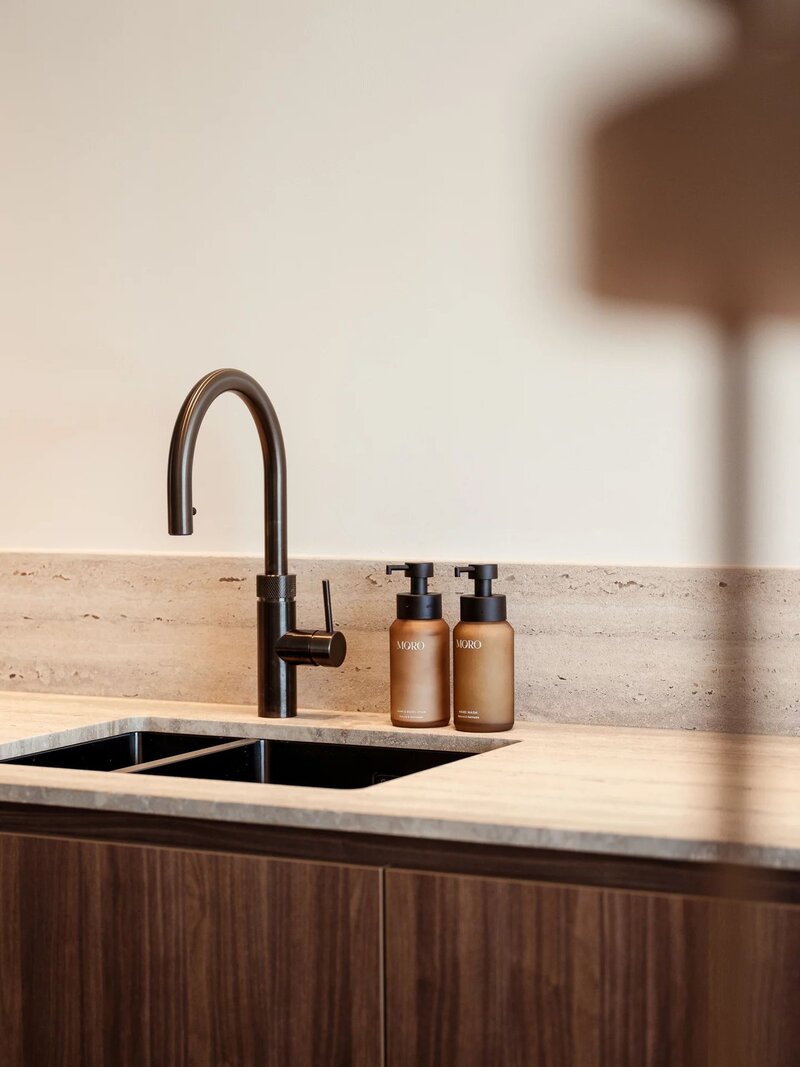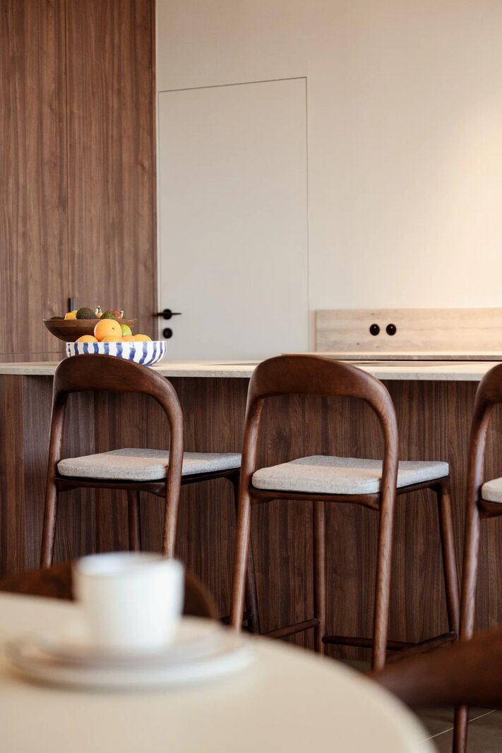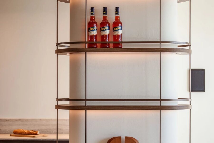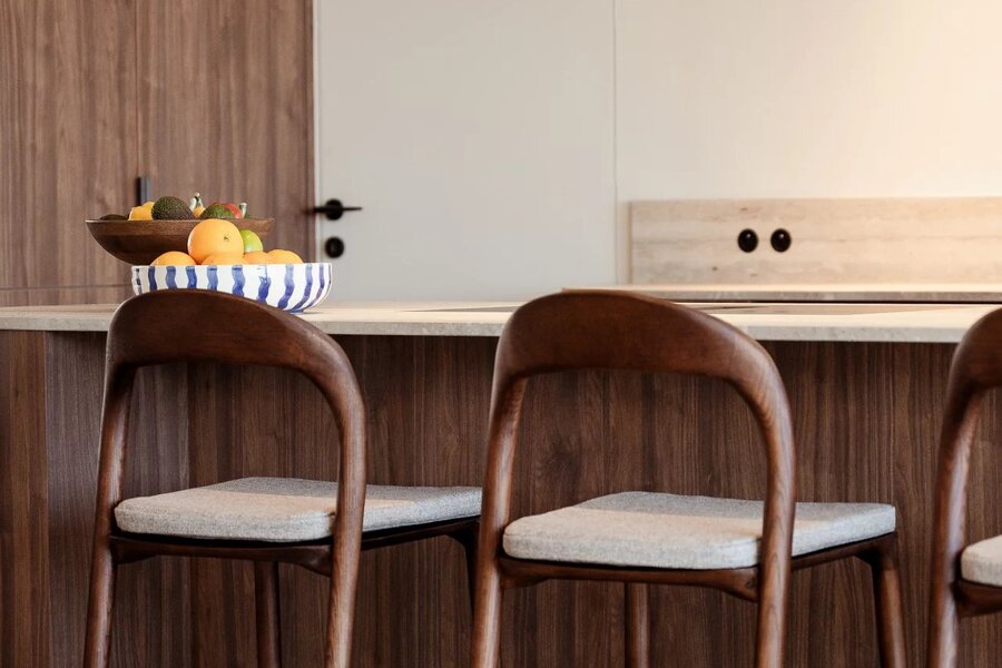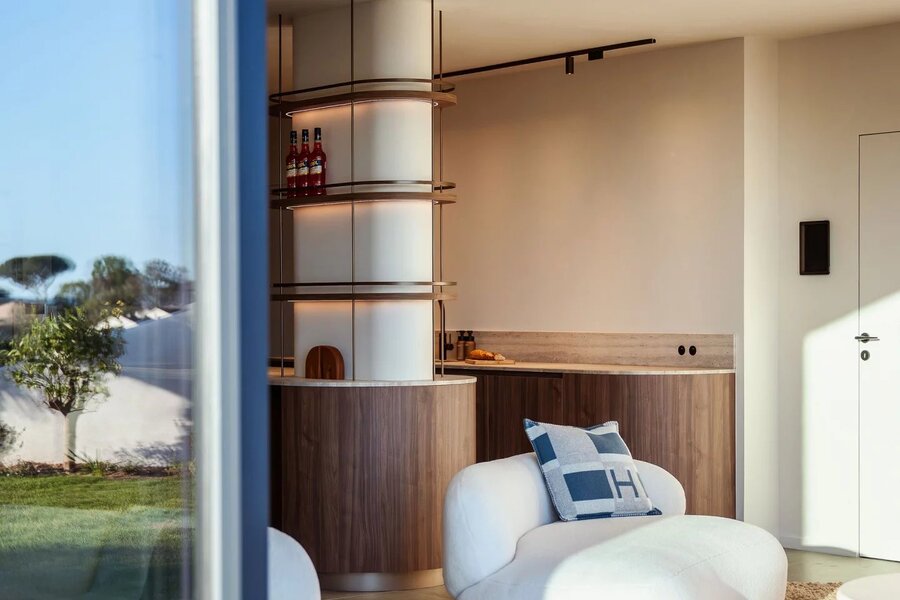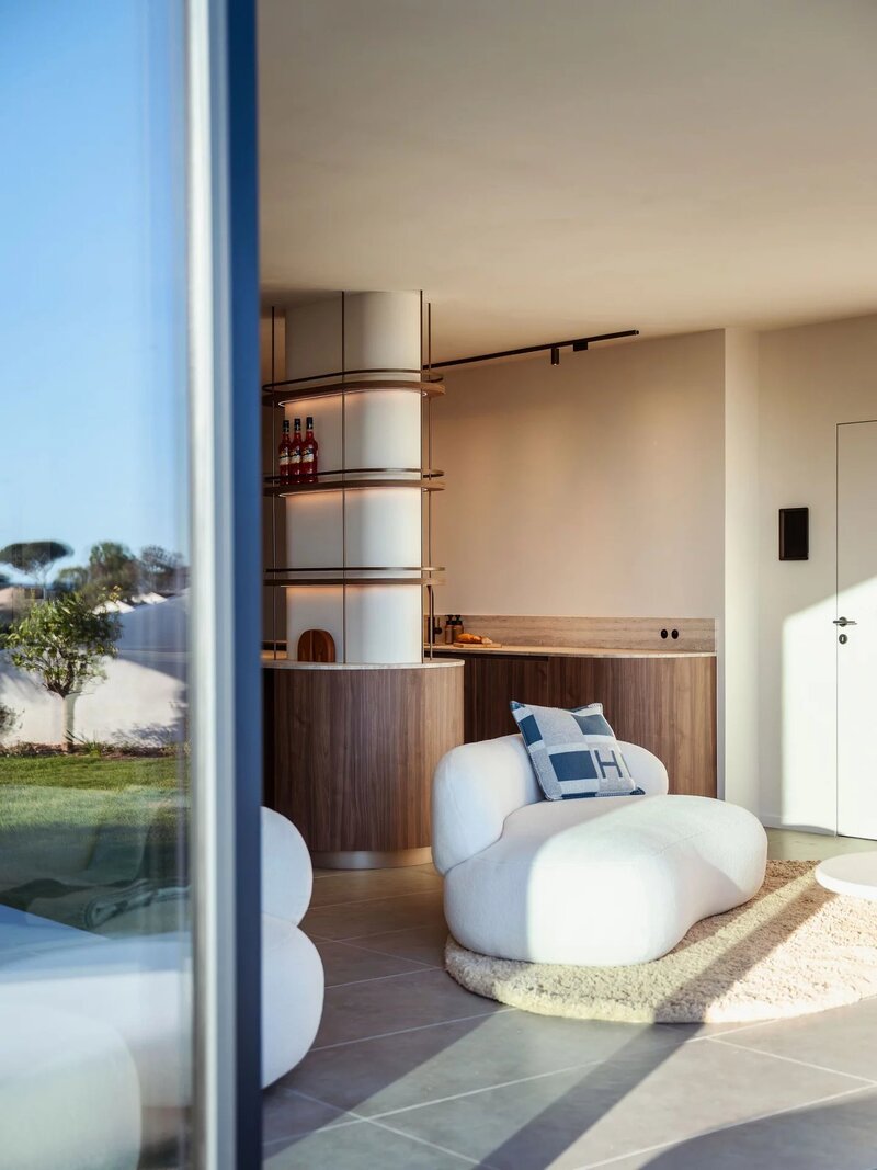 De leefruimtes zijn opgebouwd rond een volledig uitgeruste open keuken, die naadloos overgaat in de woonkamer en eetruimte. Grote raampartijen verbinden het interieur met de buitenruimtes, waardoor u optimaal geniet van de terrassen en het uitzicht.