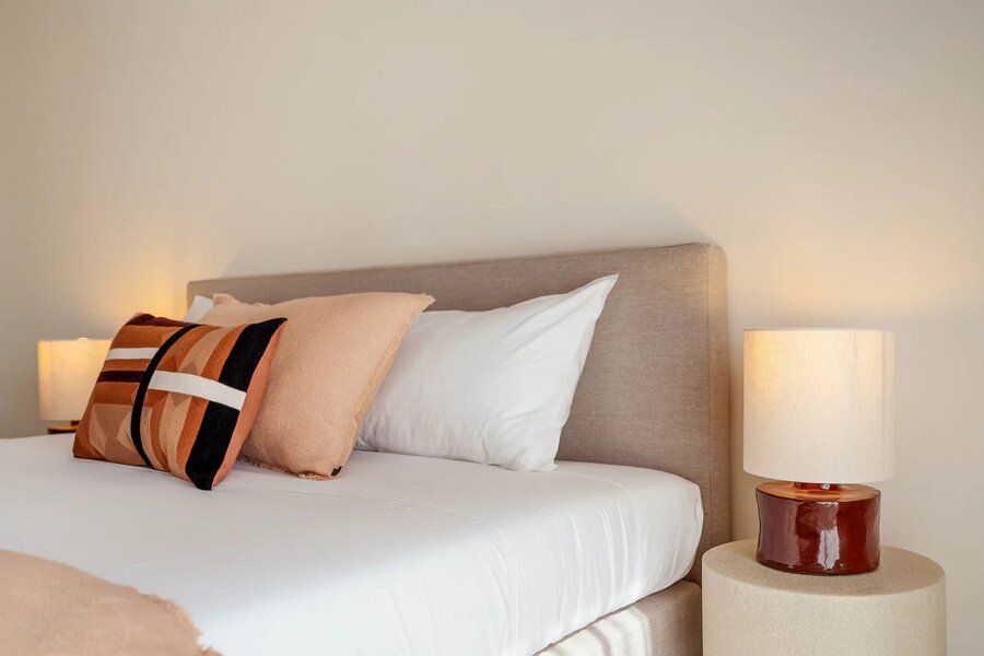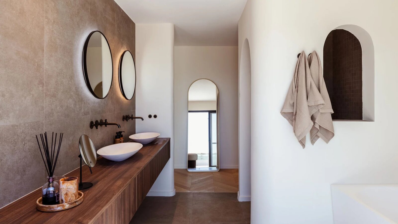 De villa beschikt over meerdere slaapkamers, waaronder een master suite op de bovenverdieping met dressing en badkamer, ontworpen met oog voor comfort en privacy.