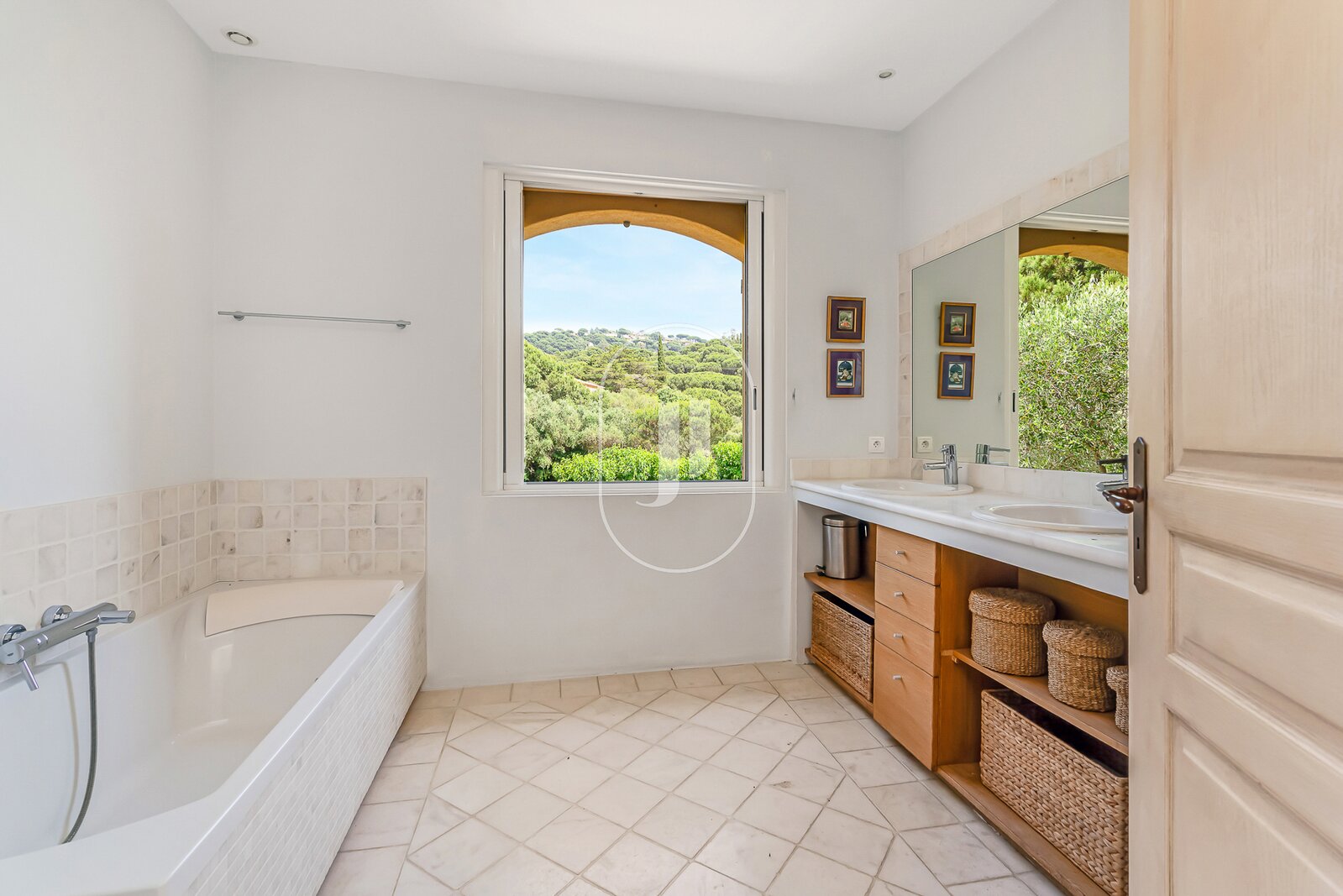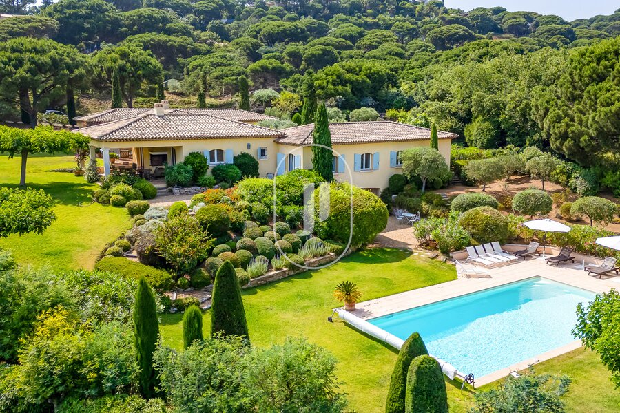 In het hart van Gigaro, verscholen in een rustige, groene omgeving binnen een van de meest gewilde privé-domeinen van La Croix-Valmer, bevindt zich deze charmante provençaalse villa op één niveau met een vrij uitzicht op de omliggende heuvels.